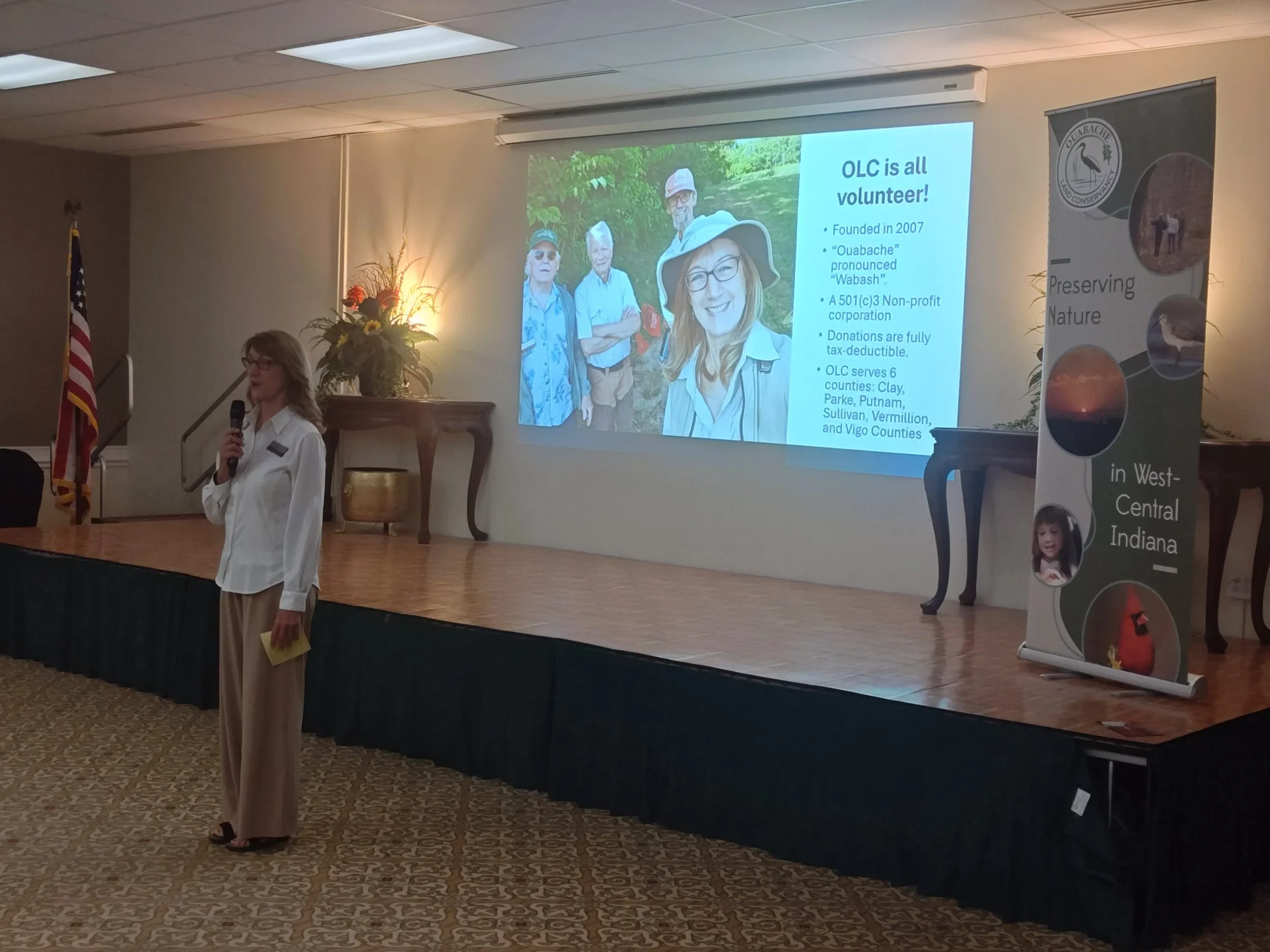 One important part of what OLC does (when we’re not hosting events or in the field) is get out in the community and share about who we are and what we do! Ouabache Land Conservancy is happy to provide speakers for community groups, classrooms, and events. Our team can share on a wide range of topics from trail building and native plants to conservation projects and upcoming events. If you’d like to invite an OLC speaker, please reach out to us at ouabachelandconservancy@gmail.com.